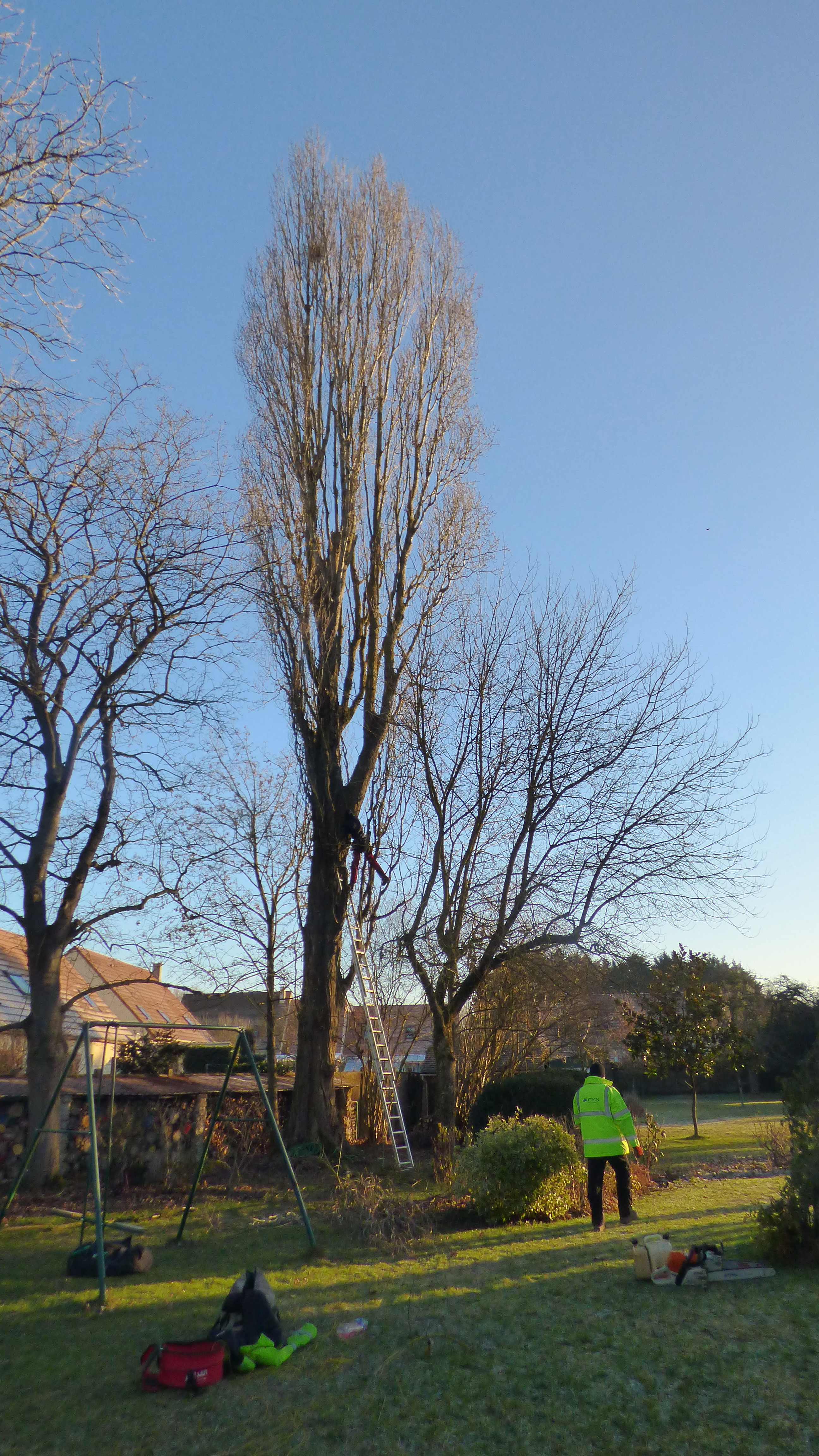 Chantier d'abattage par démontage d'un très gros peuplier d'italie à La Ferté Gaucher 77320